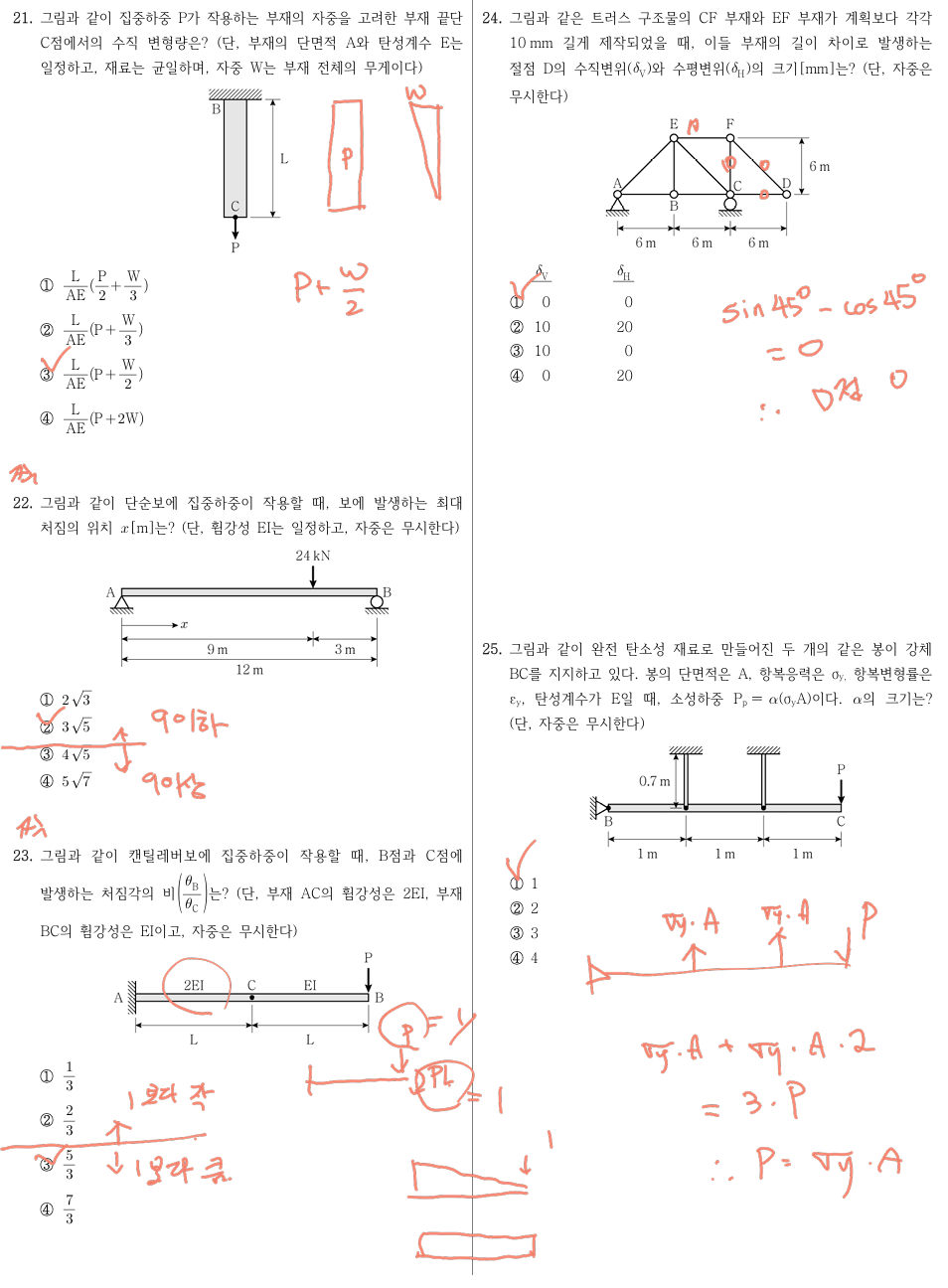 📌 기준: 2025년 7급 공무원 응용역학 국가직 시험, 총 25문항