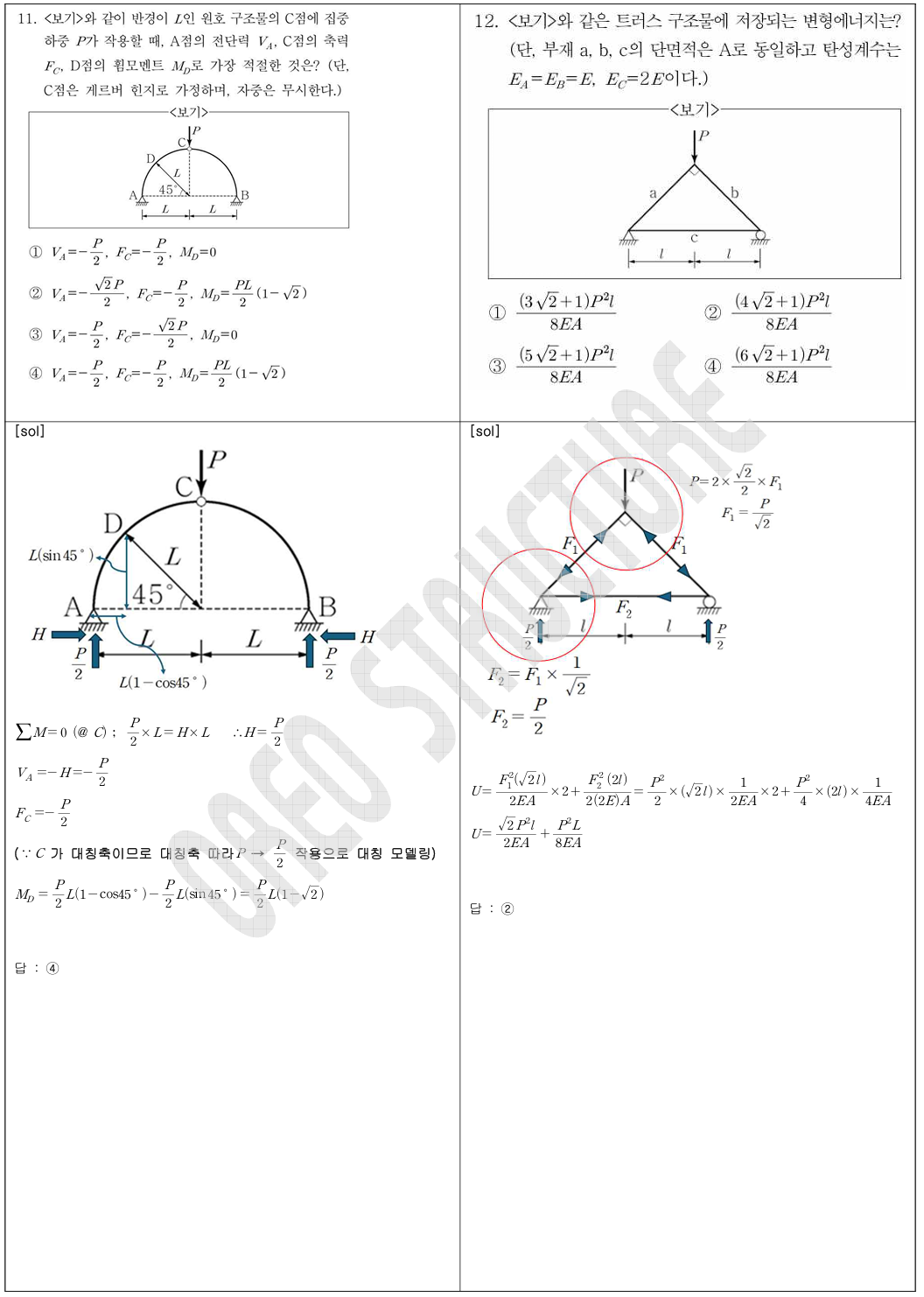11번의 정정 아치 문제는 본 포스팅에서는 평형방정식으로 풀이하였지만,
