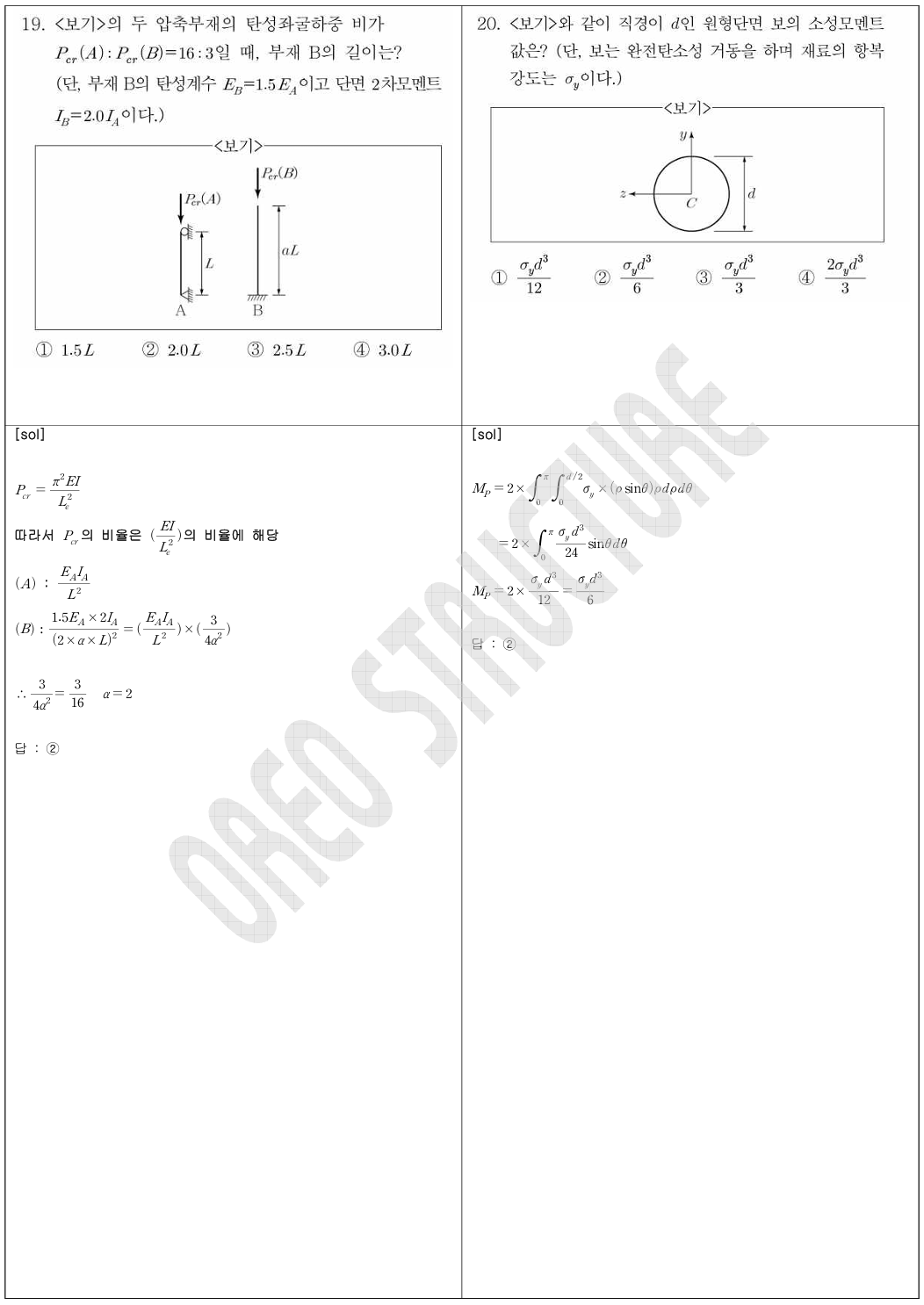 - 20번 (원형 단면의 소성 단면계수는 일반적으로 암기하나 외우지 않았으면 유도 과정 시간 걸림)