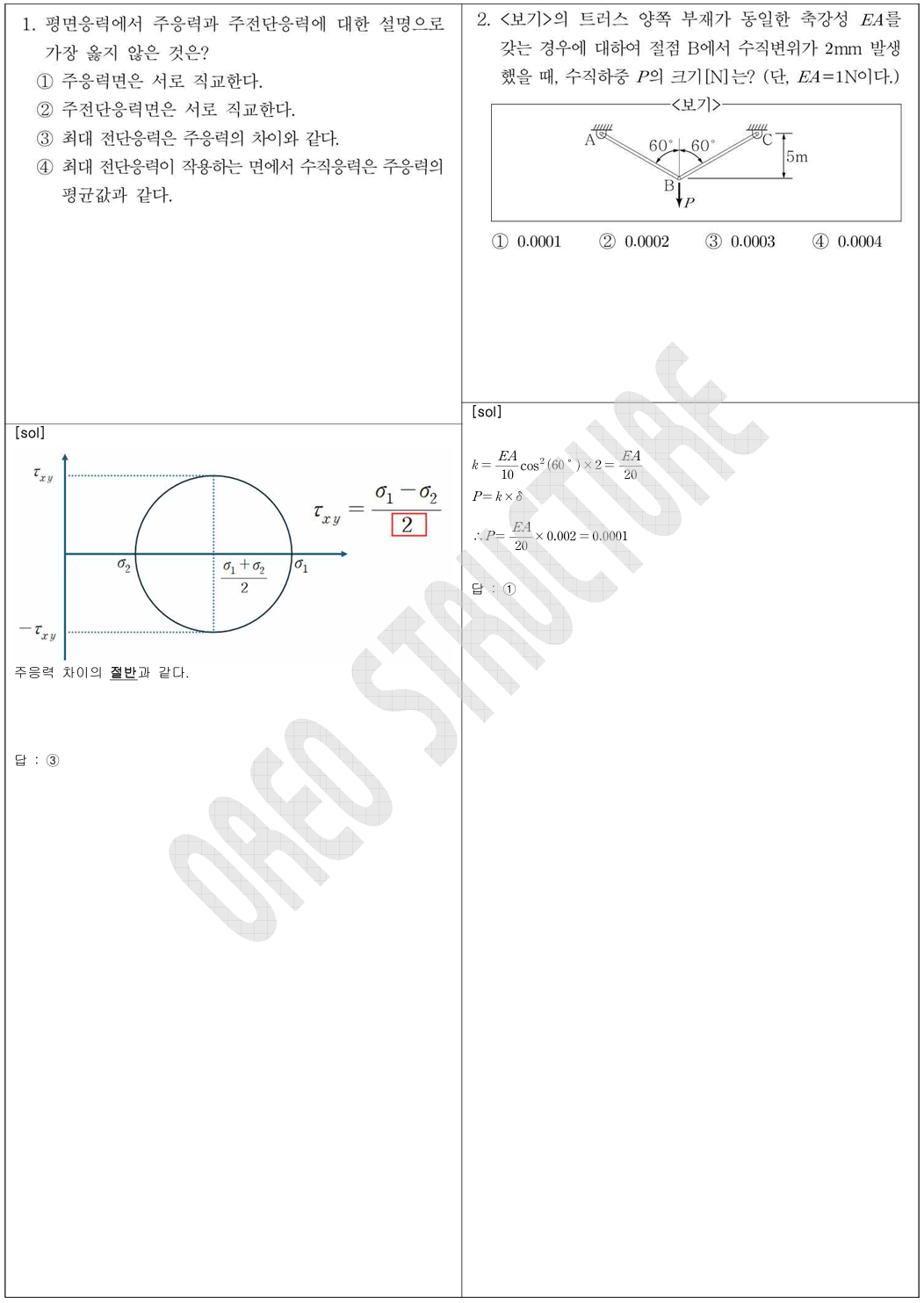 - 1 (응력-모어원), 2 (대칭 구조물 - 강성도 병렬 처리), 3 (종속 변위), 4번 (에너지에 대한 기본 개념)