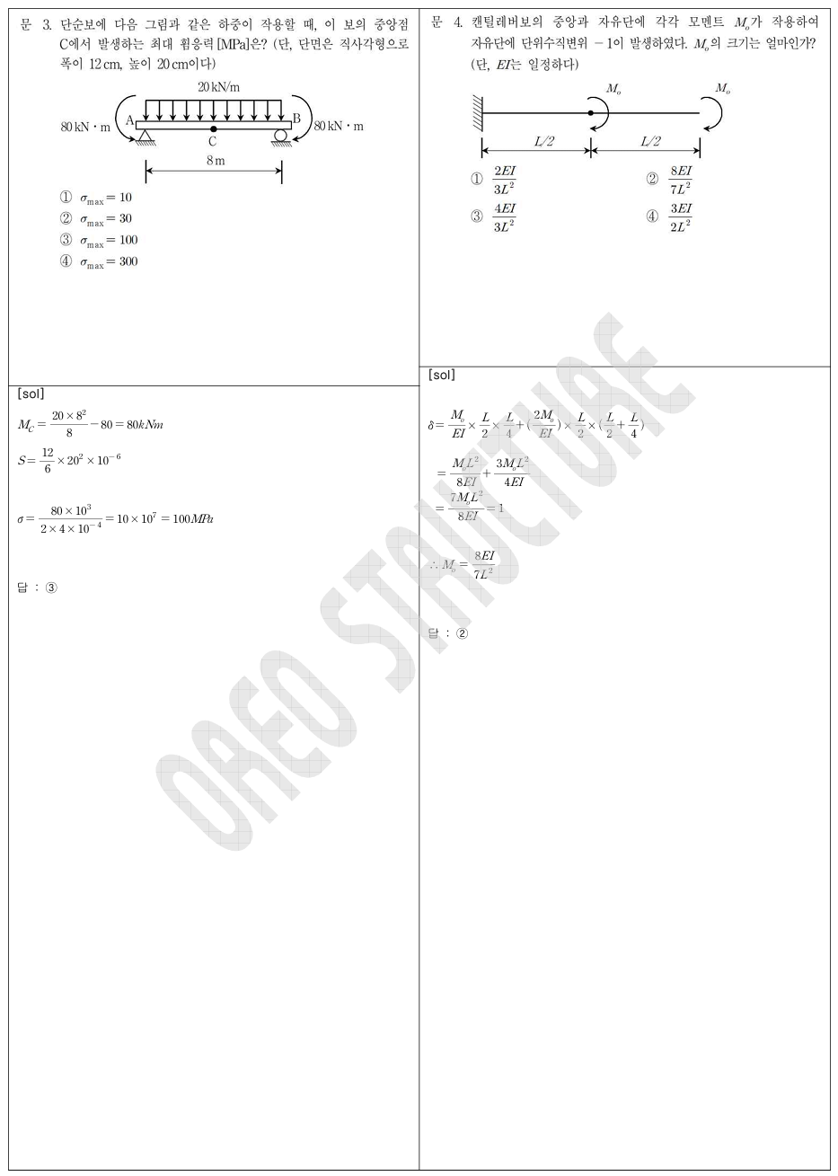- 3 (휨응력 기본문제), 4 (BMD 통한 공액보법 접근), 6 (등가절점하중 + 병렬연결),