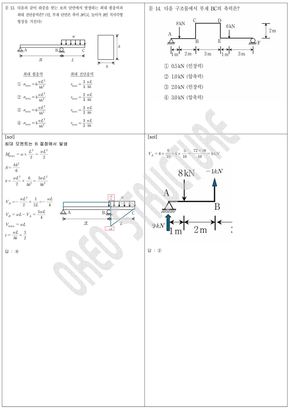 13 (보의 SFD, BMD 해석), 14 (자유물체도; 힘의 평형), 16 (정정 아치의 해석),