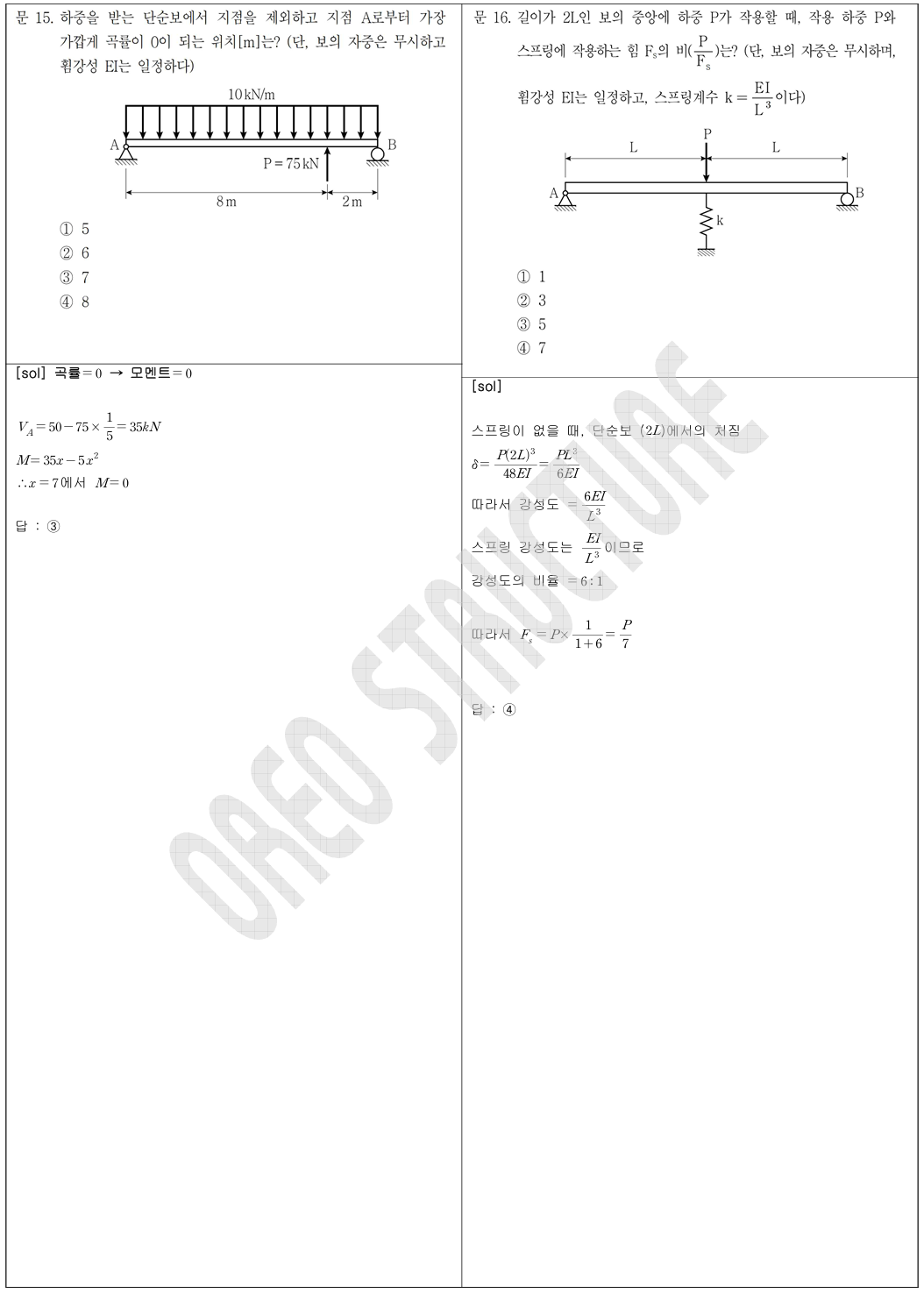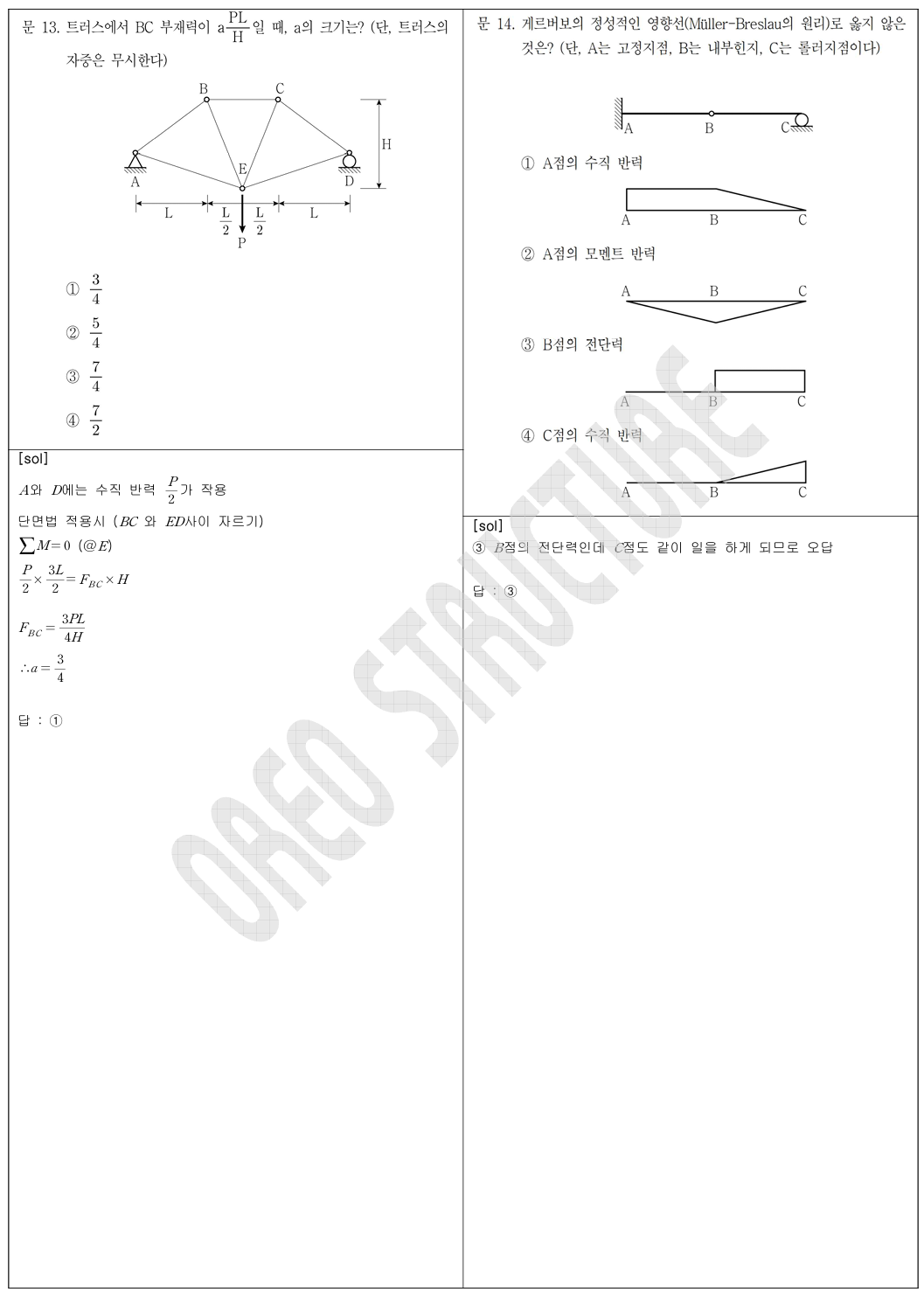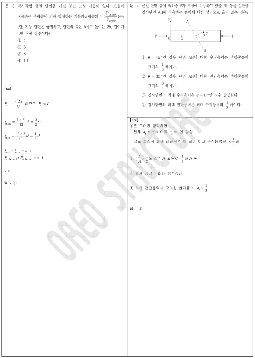 - 1 (포아송비, 탄성계수), 2 (평형방정식 or 가상변위의 법칙), 3 (단면과 좌굴의 특징),
