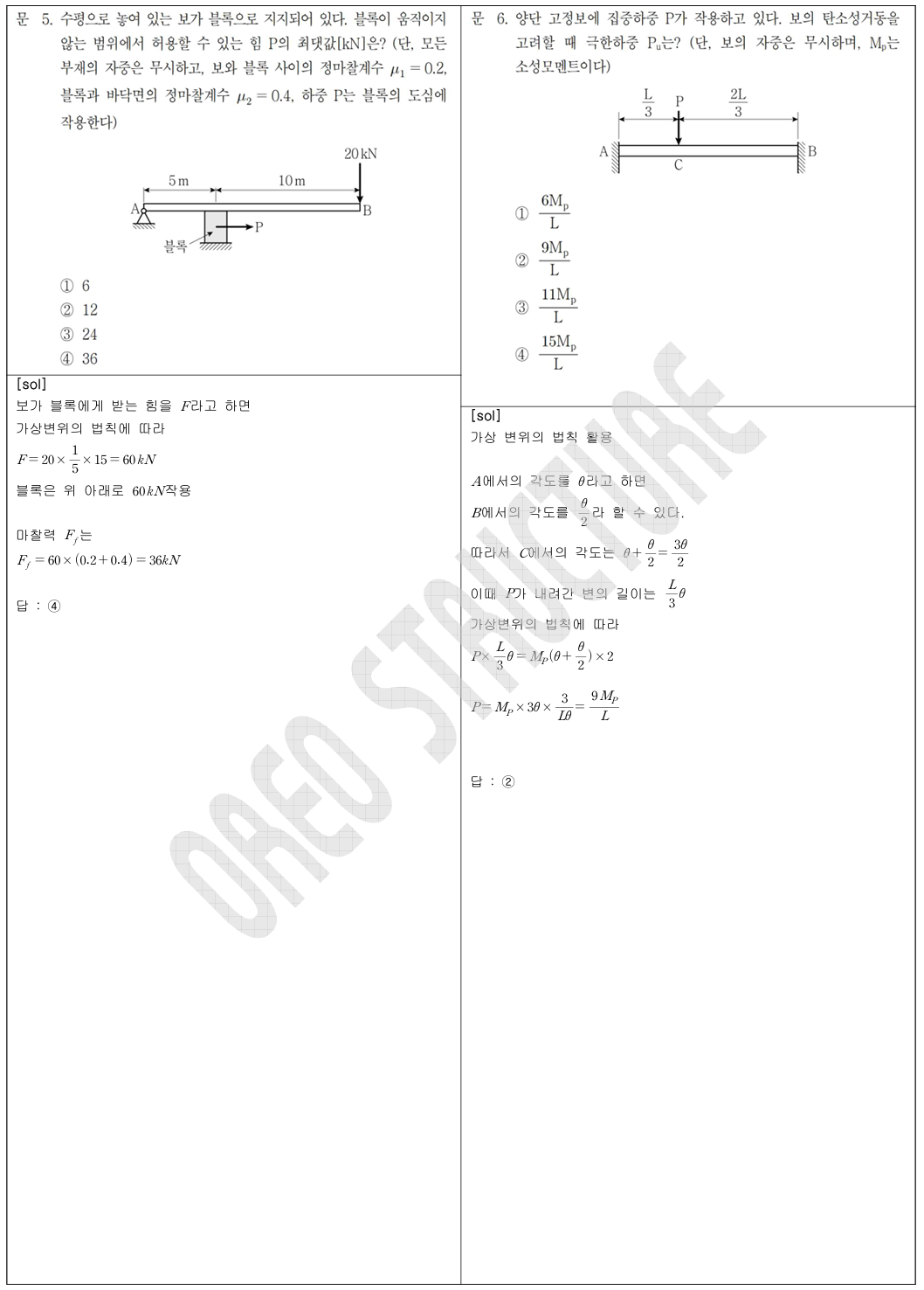 20 (모멘트 면적법), 21번 (기본 BMD, SFD, 가상변위의 법칙), 23 (구형 압력용기- 기본)
