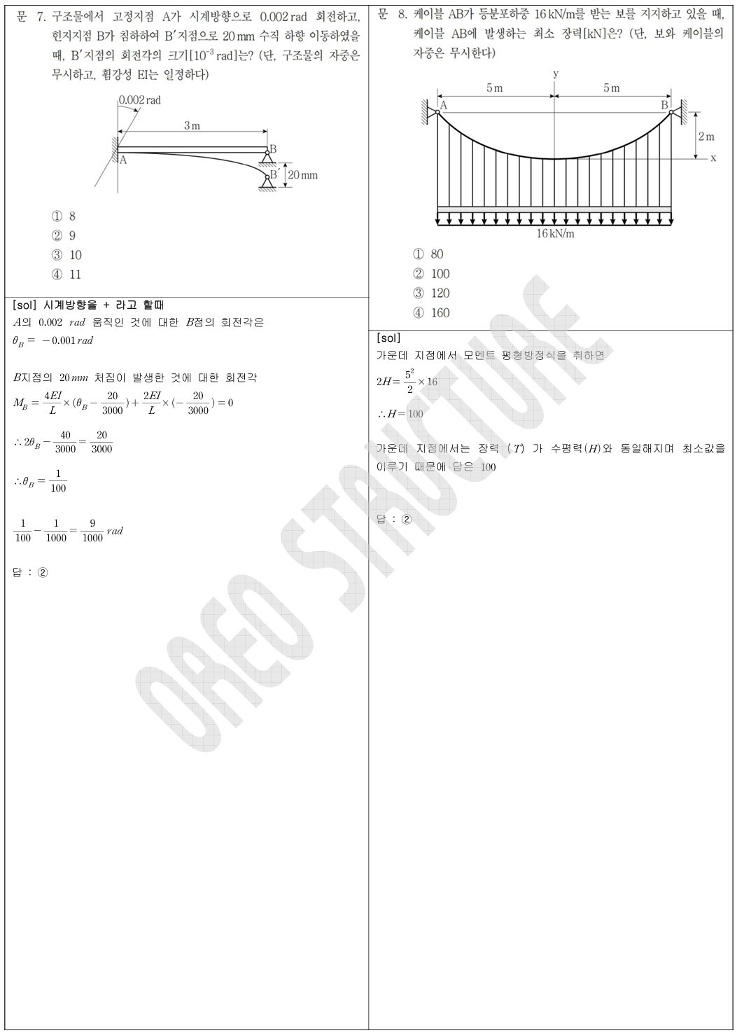 7 (처짐각법+중첩법), 8 (등분포 케이블 기본정리), 10 (가상 변위의 법칙),