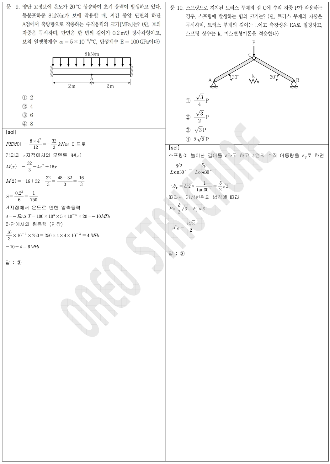 19번 문항은 온도 하중을 등가 절점 하중으로 치환하여 접근하였습니다. 관련 개념을 정리하고 싶으신 분들은 이 문항을 기준으로 학습하셔도 충분히 도움이 될 것입니다.