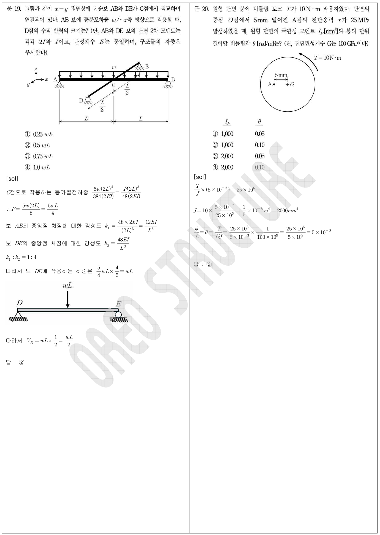 2020년 지방직 7급 응용역학 19번, 20번