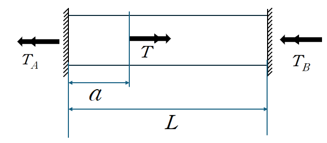 아래와 같이 양단고정의 길이 L인 원형 Shaft에 길이 a만큼 떨어진 지점에서 비틀림 Torsion이 작용한다고 했을때