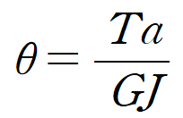 이때 자유단의 비틀림각은 공식에 의해 다음과 같이 산정됩니다.