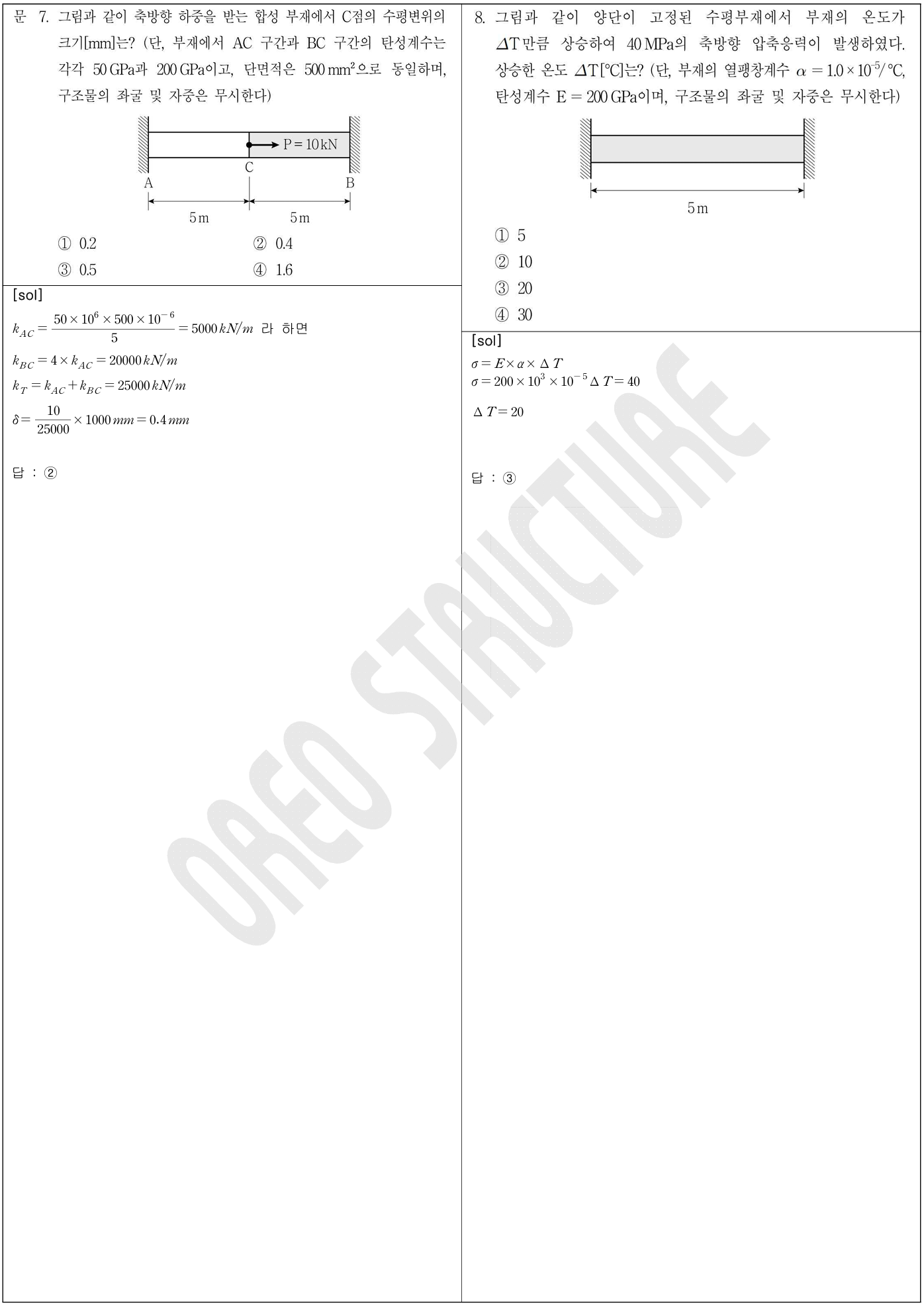 5 (중첩법), 6 (트러스 단면법), 7 (축부재 병렬연결), 8 (축부재 열에의한 응력)