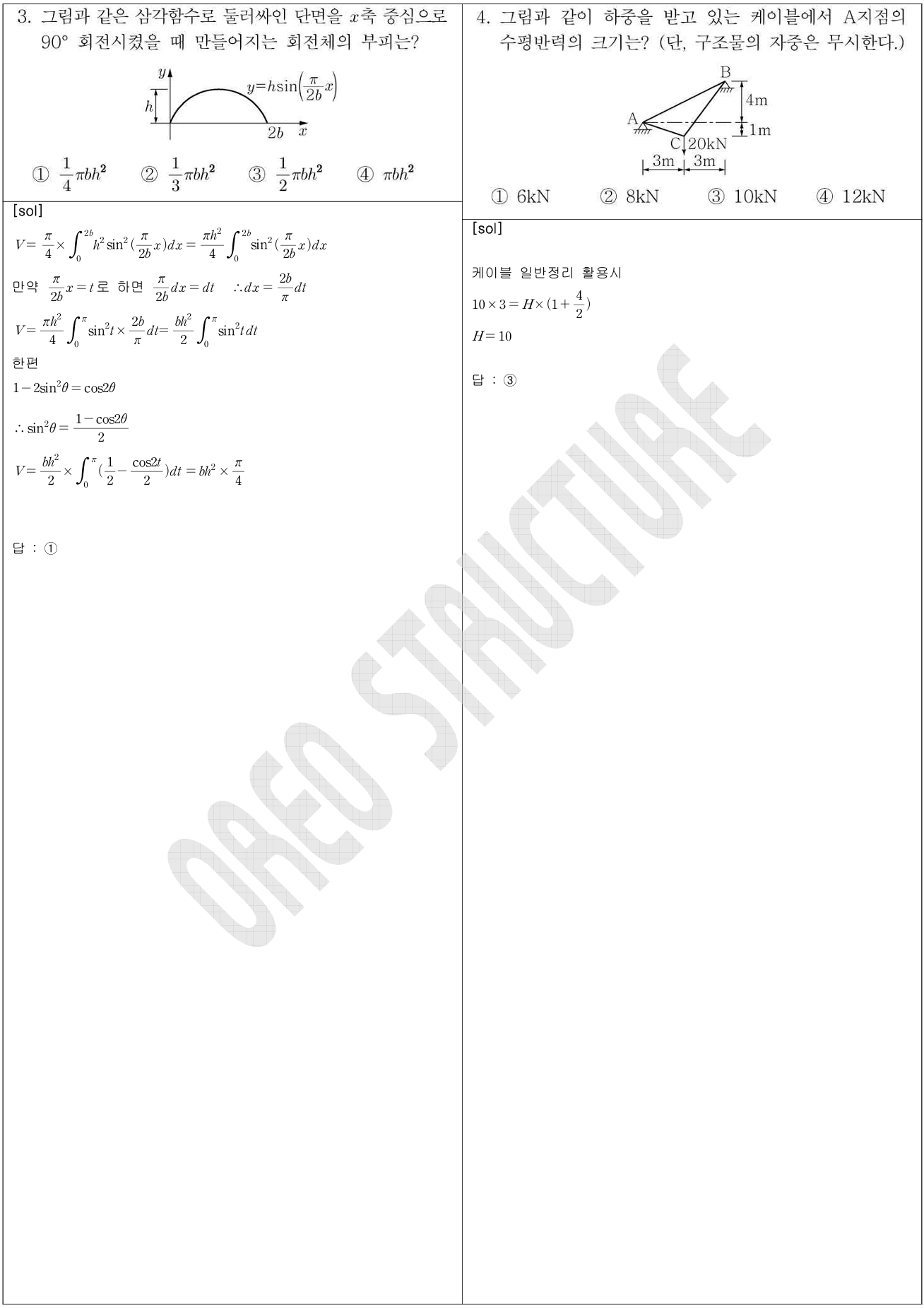 - 3 (회전체의 부피 : Papus 정리 이용 가능하나, 제시된 풀이처럼 삼각함수 적분 활용도 가능, 거의 출제 안되니 안풀어도 무방)