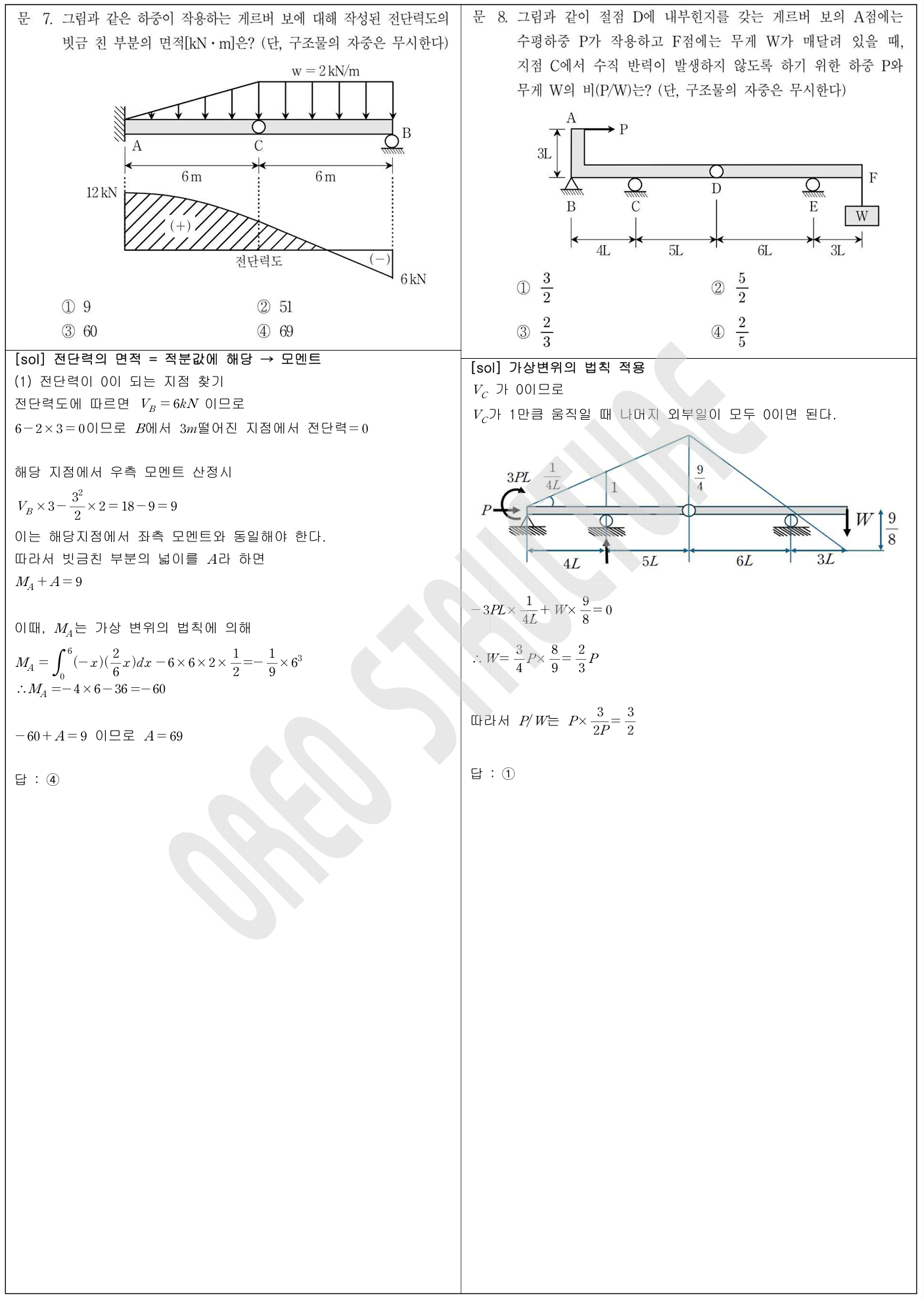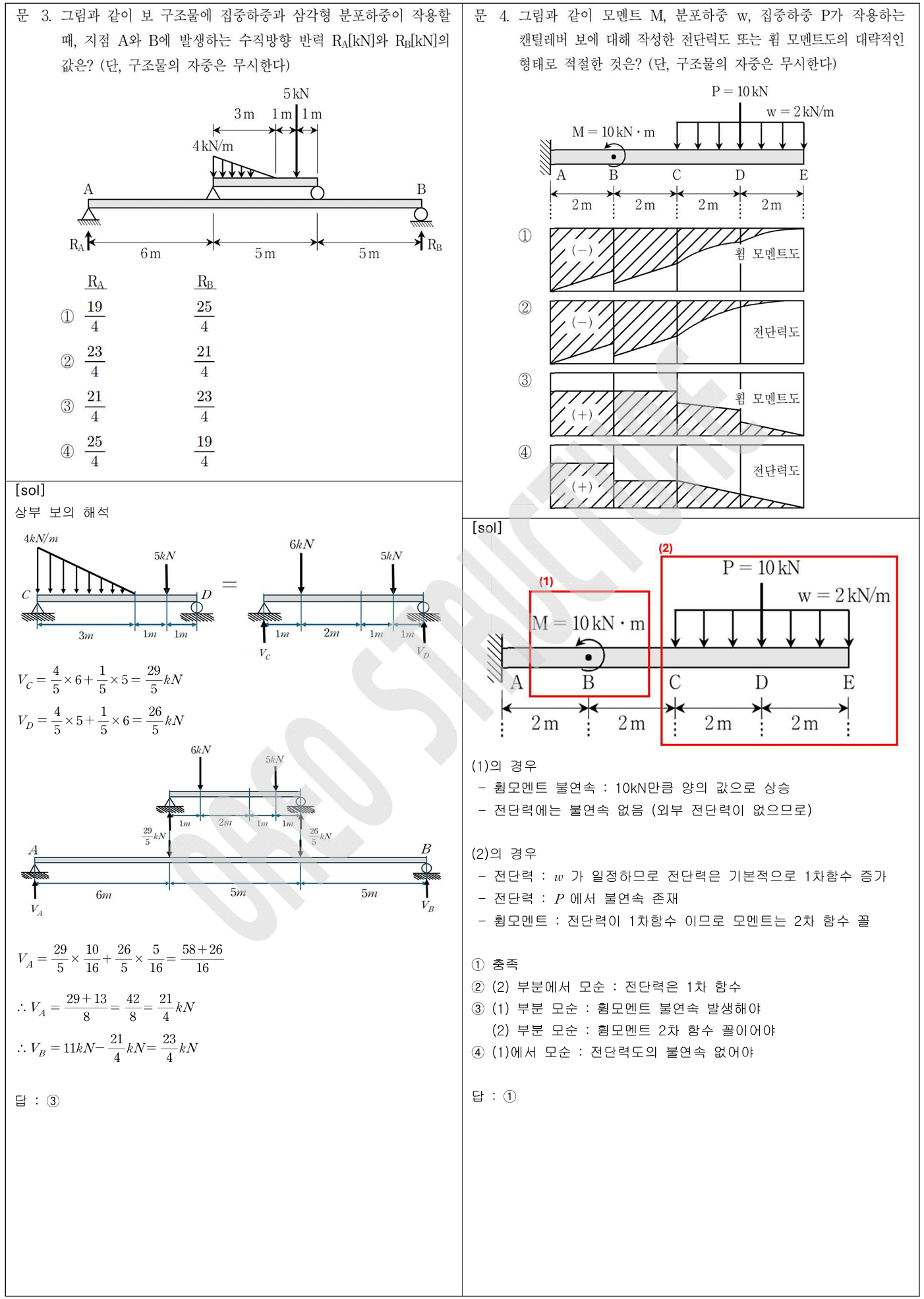 4번, 7번 문항에서도 볼수 있듯이 SFD, BMD를 통해 상황을 역추적해나가는 문제도 자주 출제되니 정리하시면 좋을 것 같습니다.