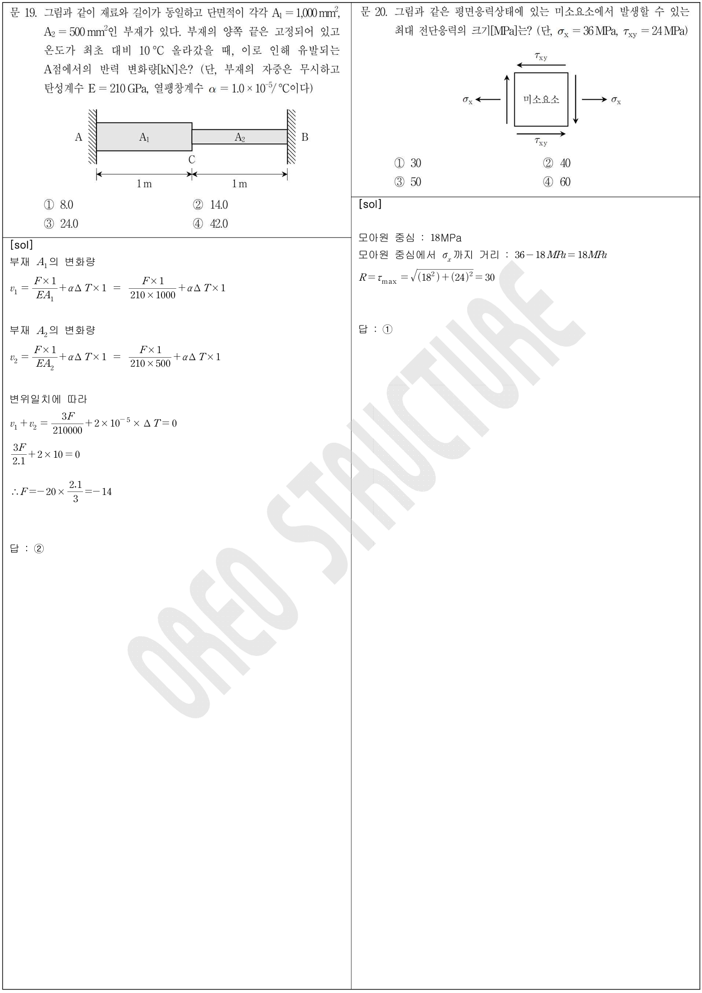 19번 (축부재-온도효과 변위일치), 20 (모아원, 최대전단응력)