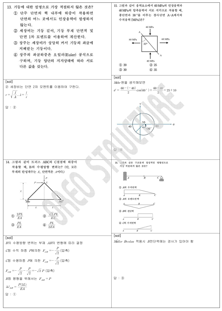- 재료역학(신장/응력변환/좌굴/열응력): 11, 13, 15, 17, 19, 24, 25
