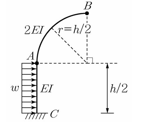 이때 아치 AB는 휨에 의한 변형이 없게 되며 마치 강체처럼 존재하게 됩니다.