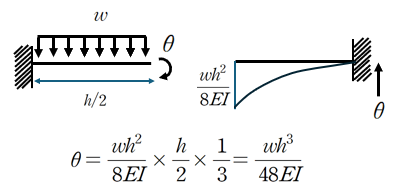공액보법을 활용하면 wh^3/48EI로 쉽게 산정 됩니다.