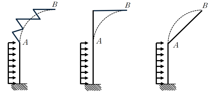 즉 위의 3가지 그림 모두 B에서의 변위는 모두 동일하게 산정됩니다.