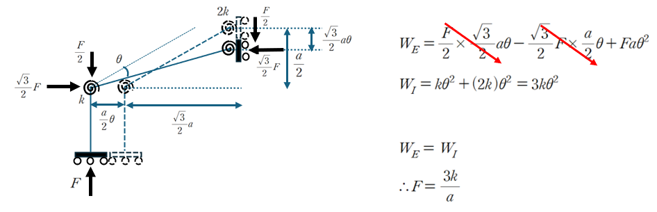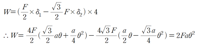참고로 경사재가 압축력 F를 받으며 생긴 Faθ^2의 항은 압축력에 대한 P-δ 효과에 따른 가상변위에너지로 설명할 수 있습니다.