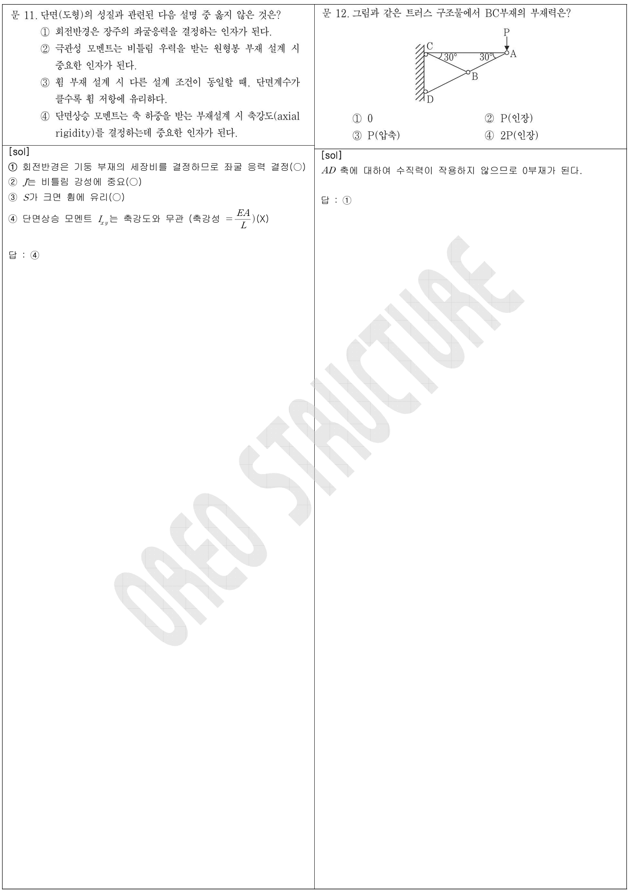 11(단면의 성질), 12(정정 트러스 구조물),13(간단한 조합하중),