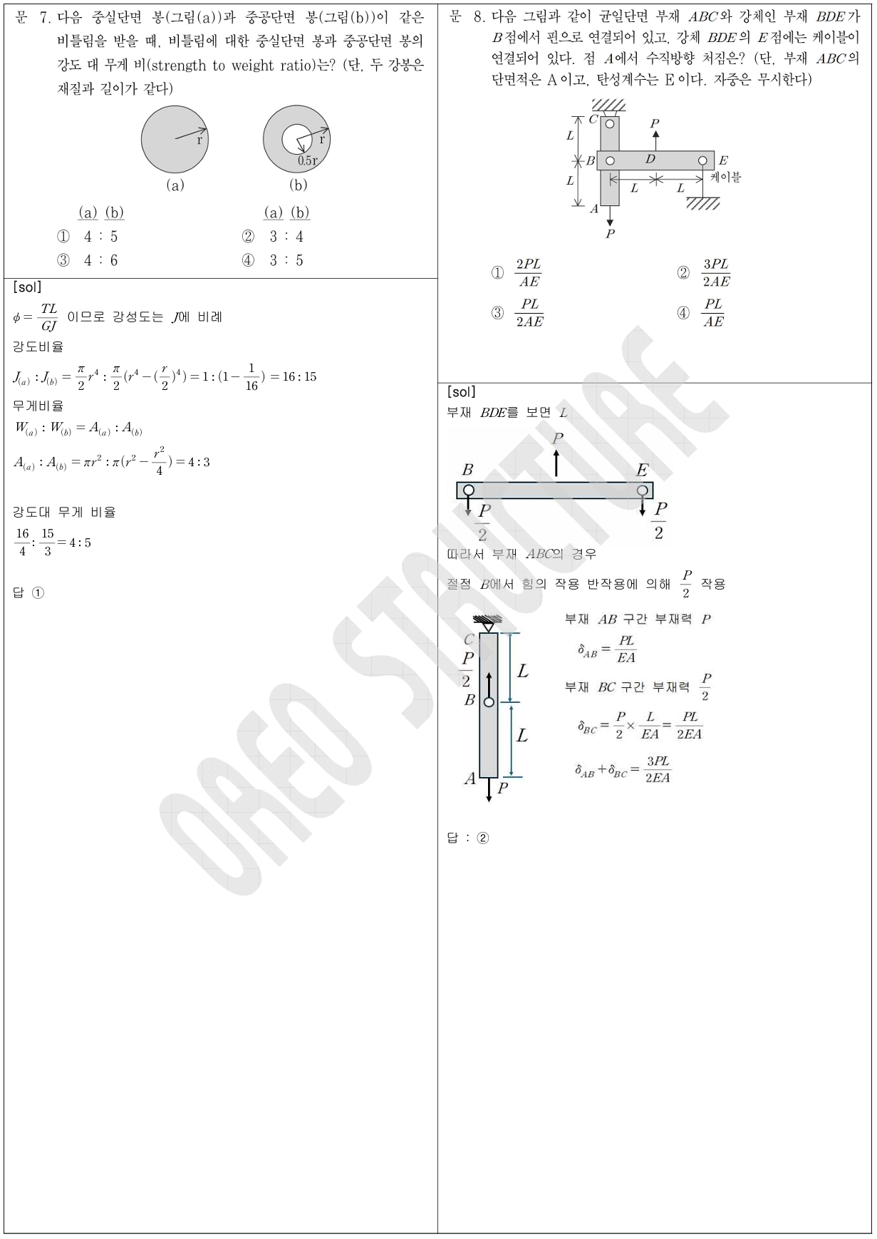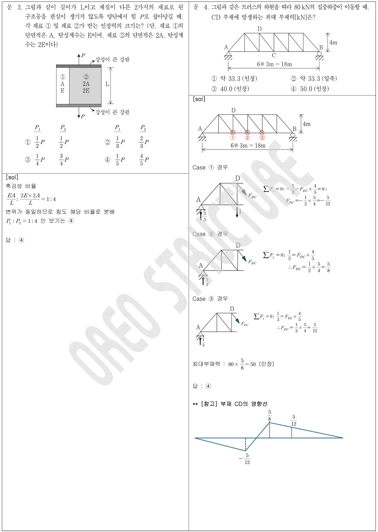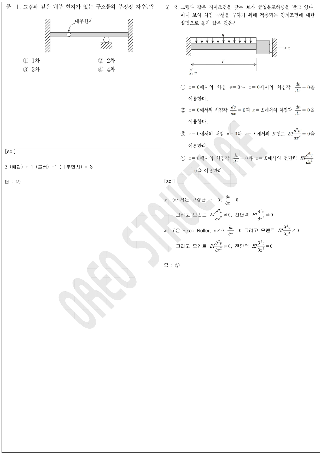 - 1 (부정정차수), 2 (보의 경계조건), 3(축부재 병렬연결), 5(정정 트러스 구조물),