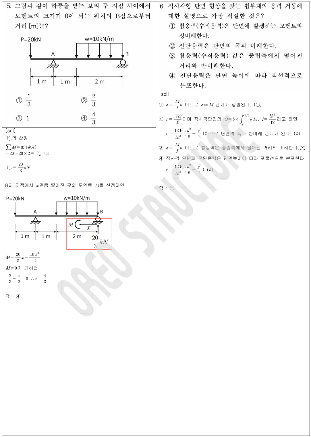 - 1 (모멘트의 평형), 2 (우력, 모멘트, 힘의 기본 개념), 3 (단면의 특성 기본 개념),