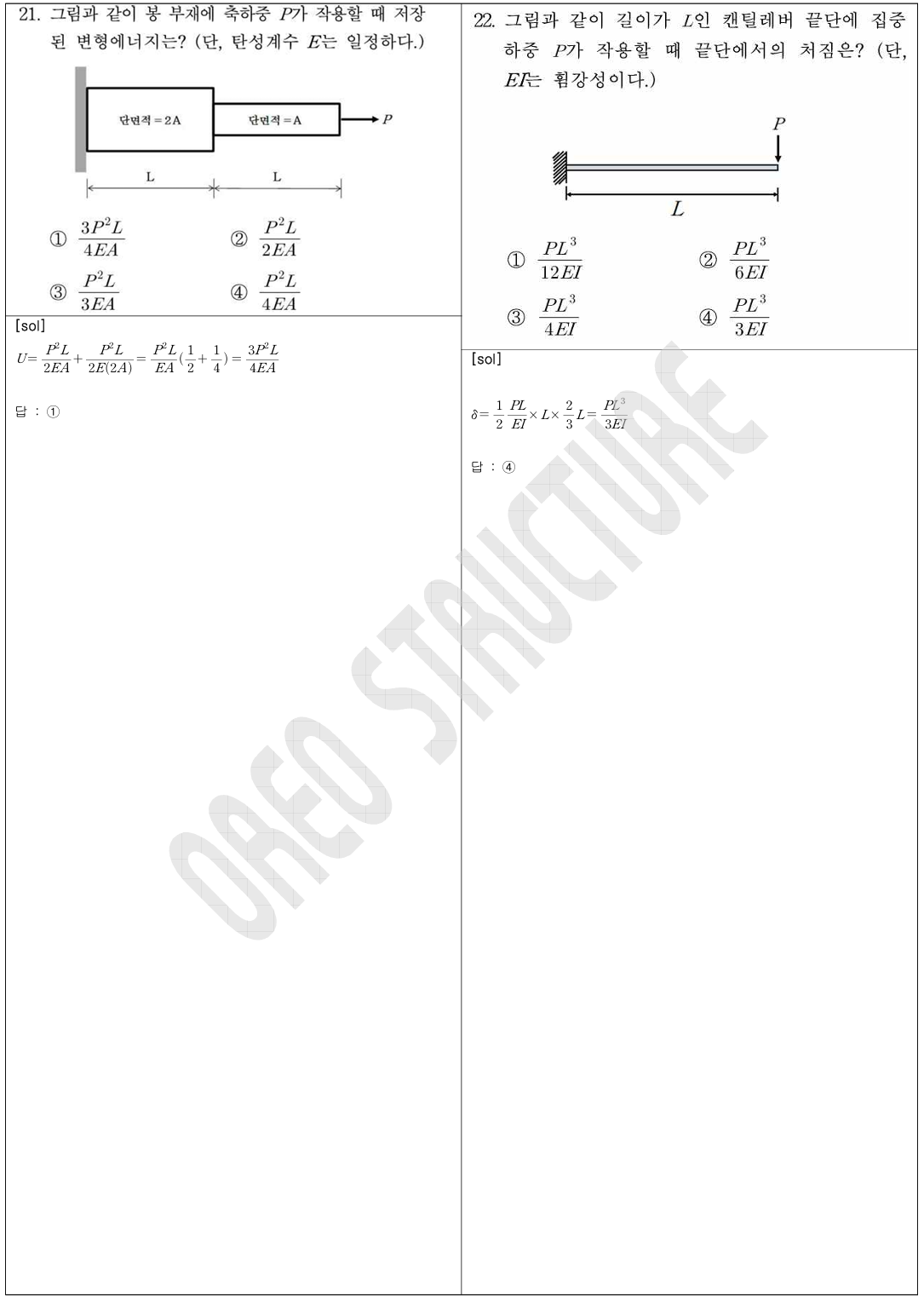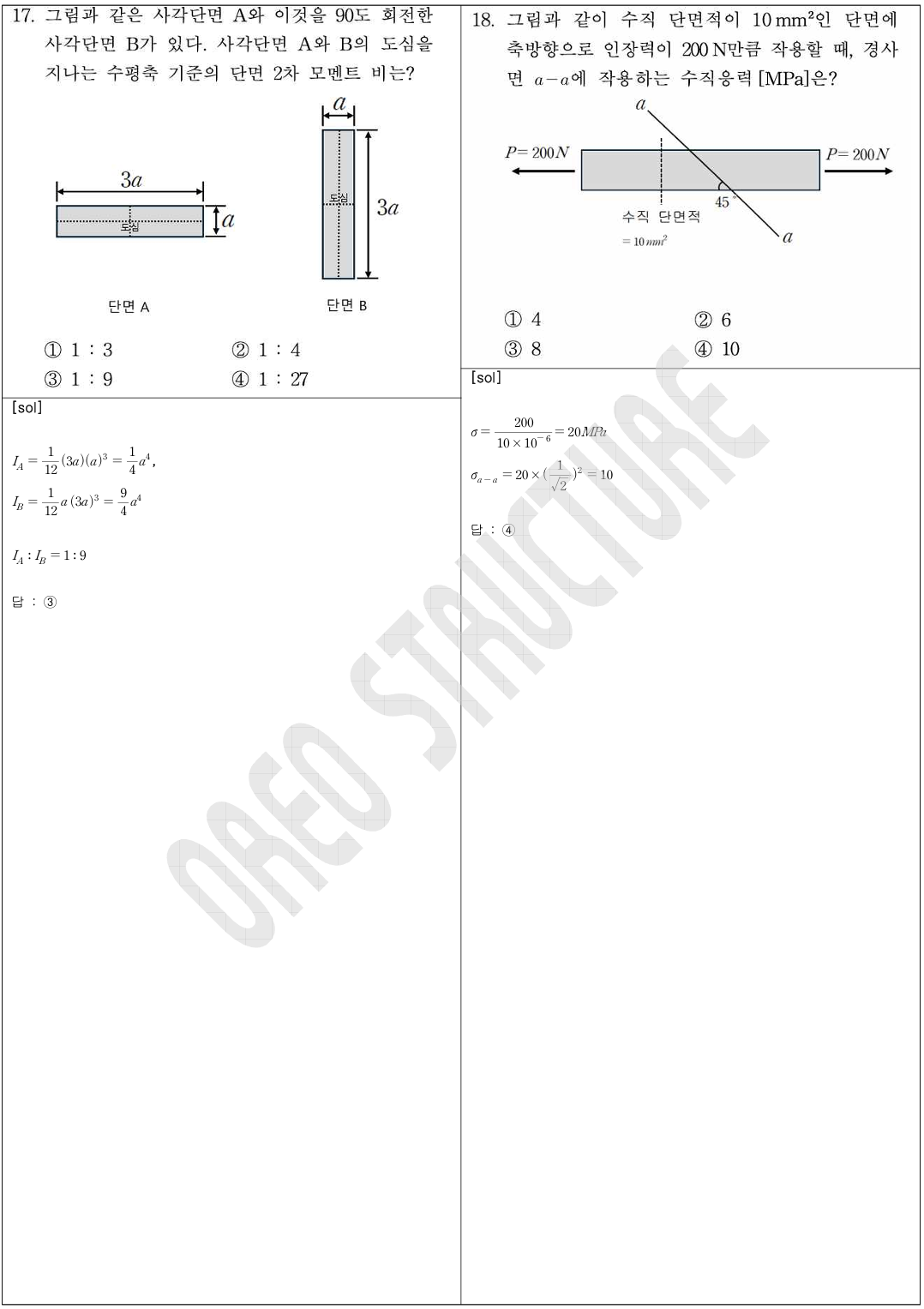 17 (단면2차 모멘트), 18 (평면의 수직응력), 20 (모멘트 식 세우기), 21(변형에너지),