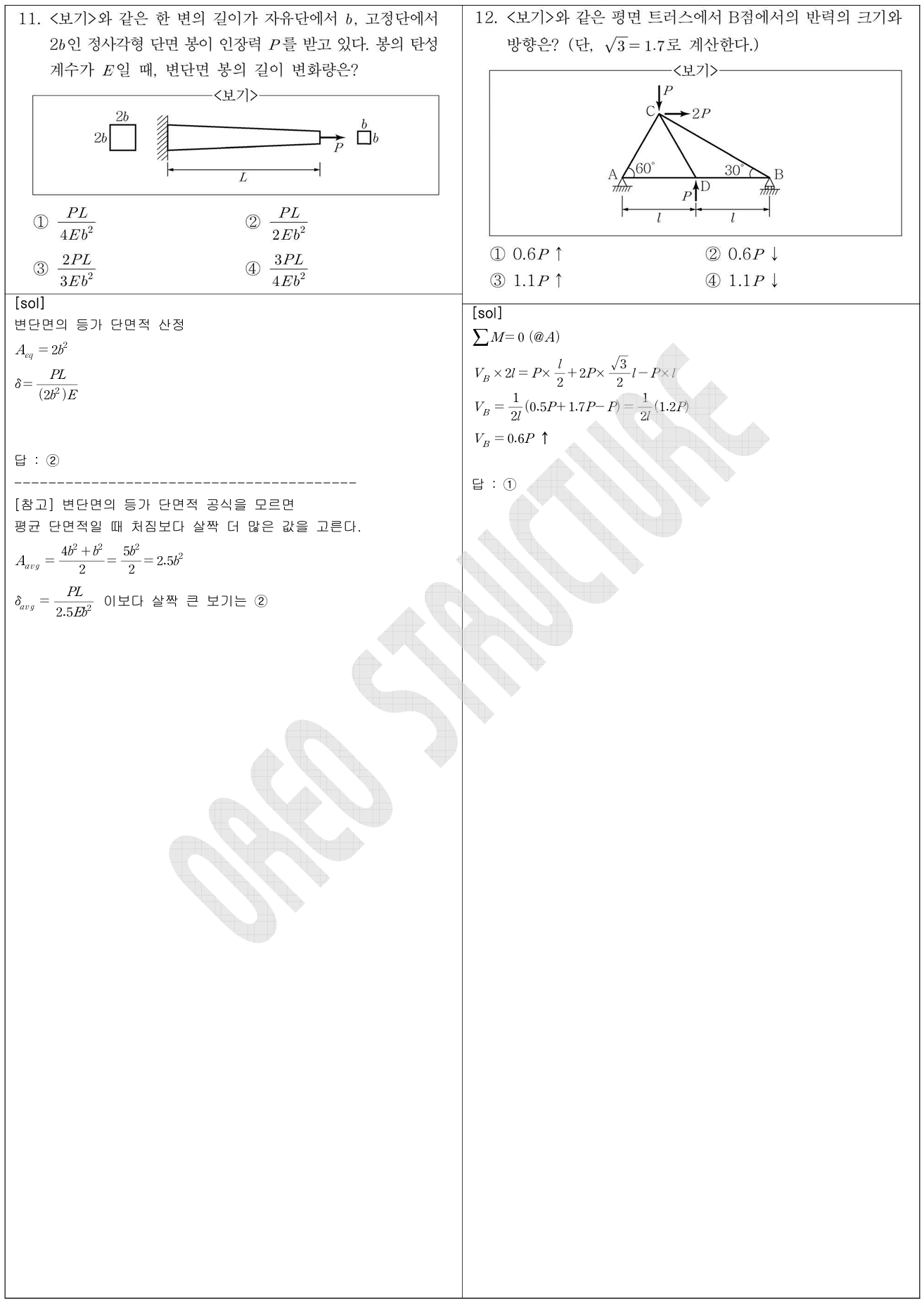 - [Newbie 기준] 8번 (얇은 단면의 비틀림) : 서울시가 유독 좋아하는 유형, 원리는 간단, 공식 암기시 편리