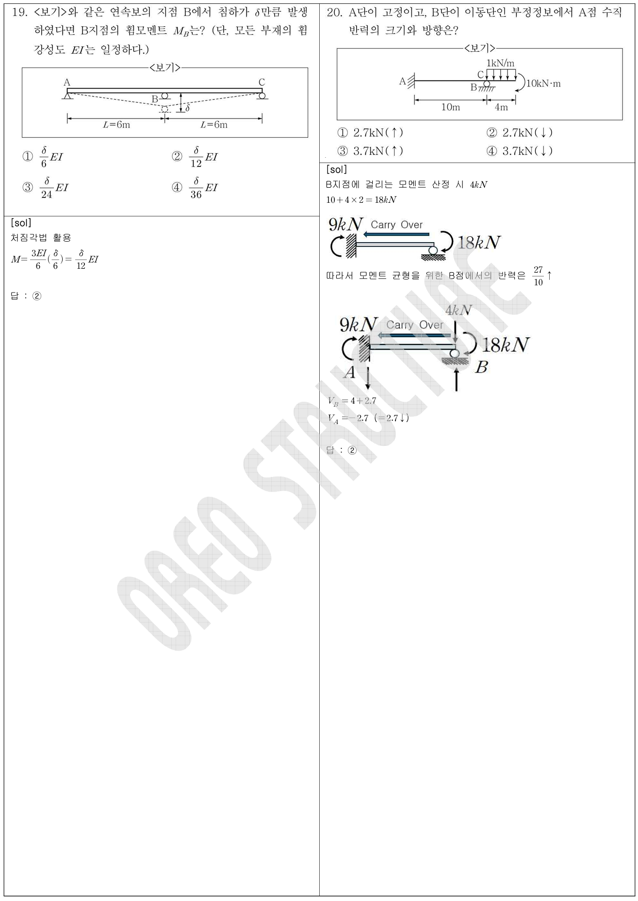 14(소성 변형, 잔류 변형),16 (축부재의 병렬연결), 19 (대칭 구조물의 지점침하)