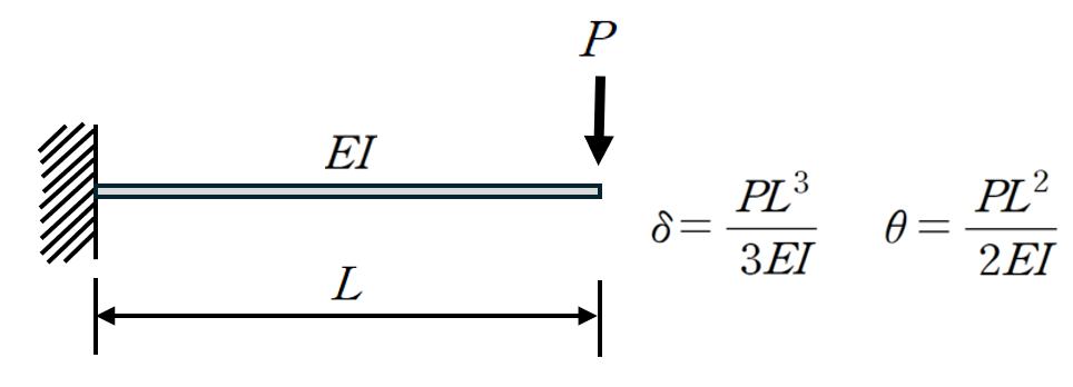 캔틸레버의 자유단에서 집중하중이 발생하였을때 처짐과 회전각의 관계에 대해 암기하고 계시는 분들이 많을 것이라 생각합니다.
