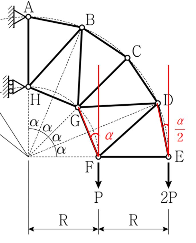 따라서 E 점에서 절점법을 취하면 EF 부재의 부재력을 구할 수 있습니다.