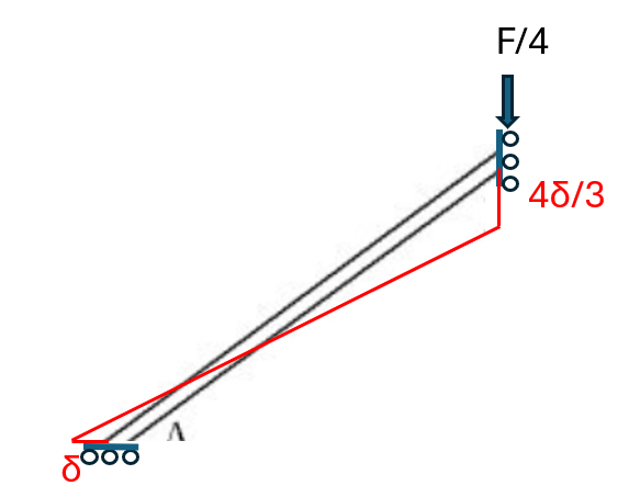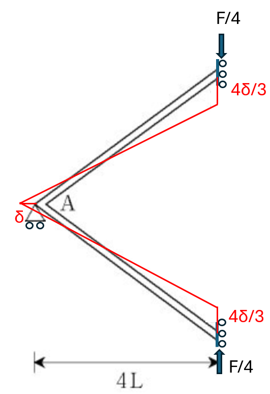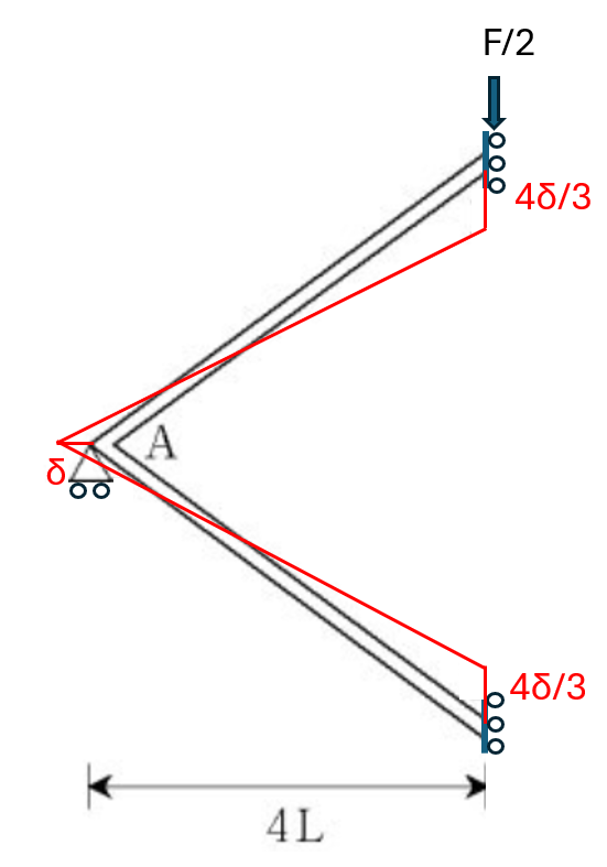 이 하중이 한 외부 가상일은 $\frac{4 \delta}{3}\times\frac{F}{2}$ 가 된다.