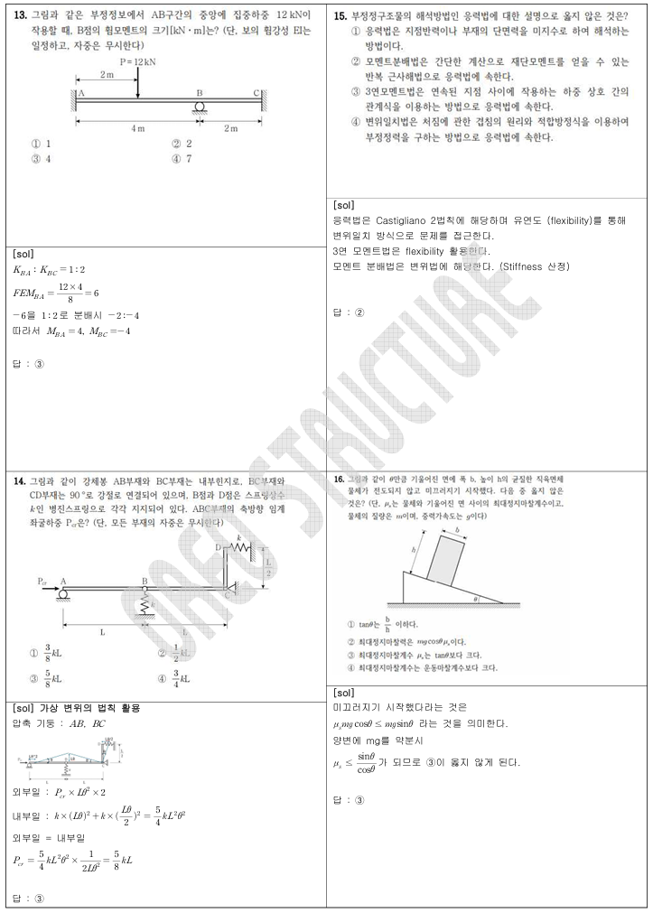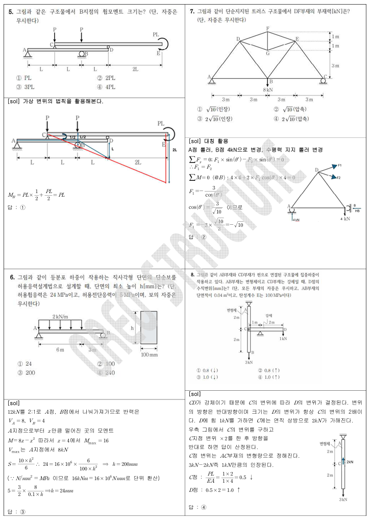 또한 일부 문항에서는 가상변위의 법칙을 함께 활용하여,