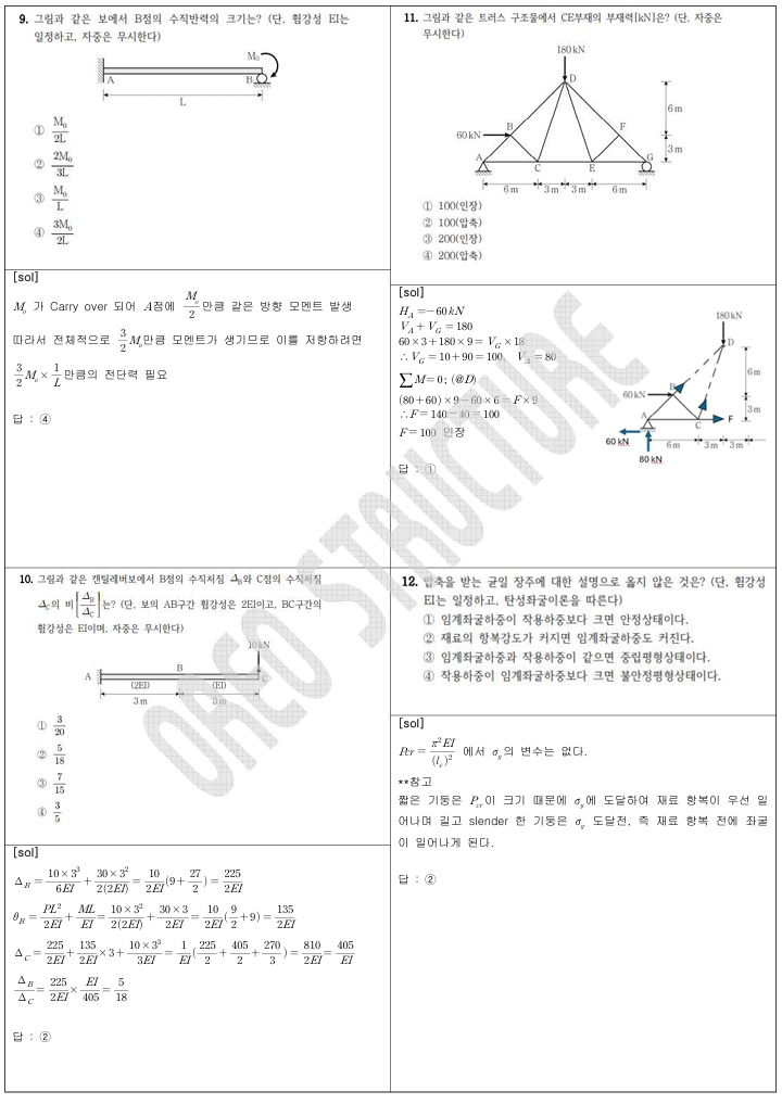 단면법이나 평형방정식 외에도 에너지 관점에서 문제를 단순화하는 사고 방식을 보여주었습니다.