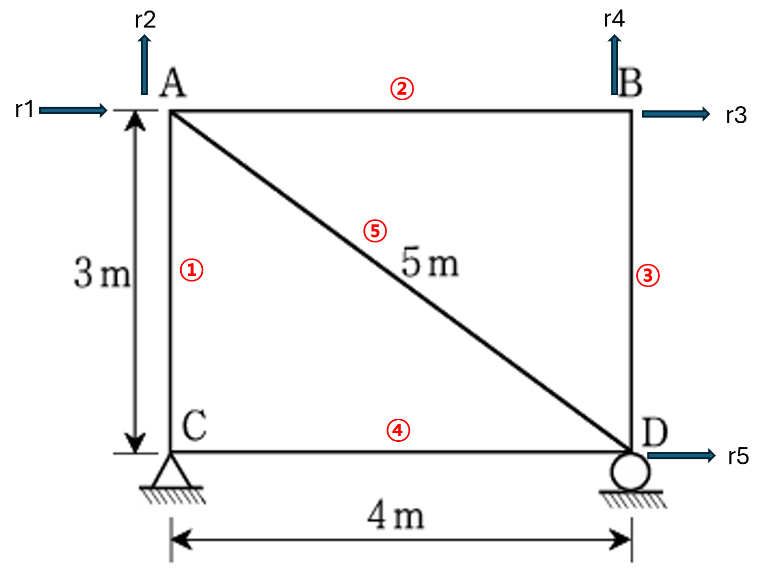 각 부재의 자유도(Local DOF)는 ① ~ ⑤로 표기하겠습니다.