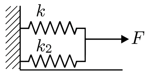 수직 배열된 스프링에 같은 힘이 전달되지만,