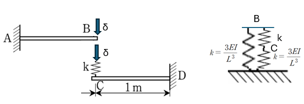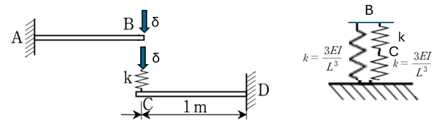 (2) 스프링 k와 캔틸레버보 CD의 등가 강성도 산정