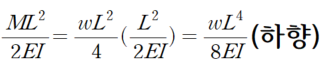 모멘트 M (C점에서 작용하는 wL^2/4 )도 C점의 연직 하향 방향으로 처짐을 유발합니다.
