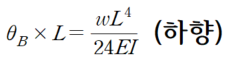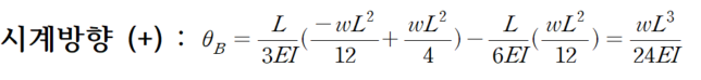 지점 B를 기준으로 시계방향 모멘트와 각도를 양의 값으로 모멘트와 각의 관계식을 세워보면 다음과 같이 표현 할 수 있습니다.