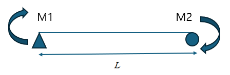 구조물을 스프링처럼 단순 모델로 치환하는 직관은 유용하지만, 보는 단자유도 스프링과 달리 양단 회전이 독립적으로 존재합니다. 다시 말해, 스프링은 인장/압축 하나의 작용만 고려하면 되지만, 보의 양단에는 서로 다른 방향(시계/반시계)의 모멘트 M1, M2가 동시에 작용할 수 있습니다.