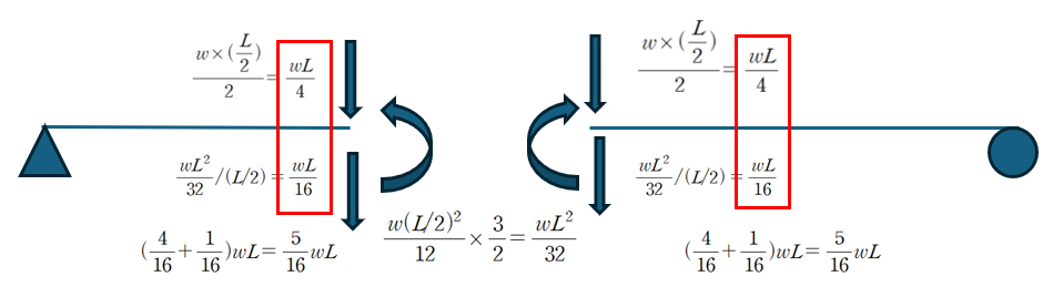 따라서 중앙부에 10wL/16이라는 집중하중이 작용하는것과 동일한 처짐결과를 얻게 됩니다.