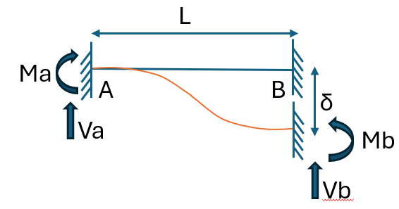 즉, δ 만큼 지점 침하가 발생하였을때, 아래와 같이 정리할 수 있습니다.