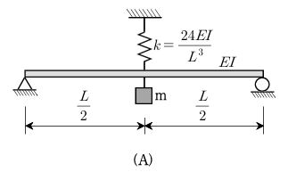 (A)에서는 단순보 중앙의 처짐 자유도와 스프링의 자유도가 함께 작용하고 있습니다.