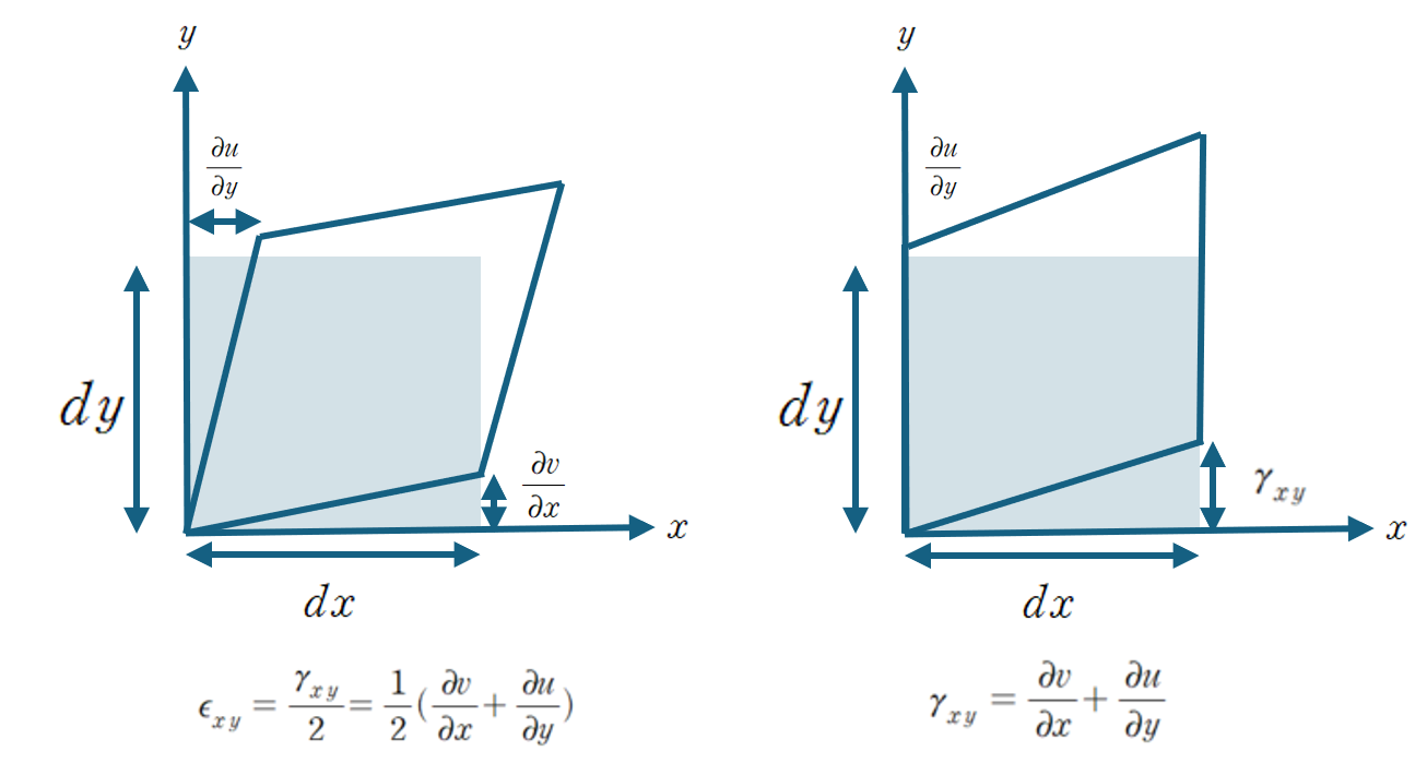 그 전에 미소요소 dx, dy를 통해 정의된 전단변형률의 정의에 대해 살펴봅시다.