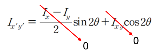 즉, 응력 변환 공식에서 τ자리에 −Ixy 를 그대로 대입한다고 생각하면 됩니다.