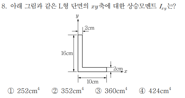 문제는 Ixy 단면상승모멘트에 대해 물어보는 유형이며 이에 더해 중립축 정리까지 하는 유형입니다.