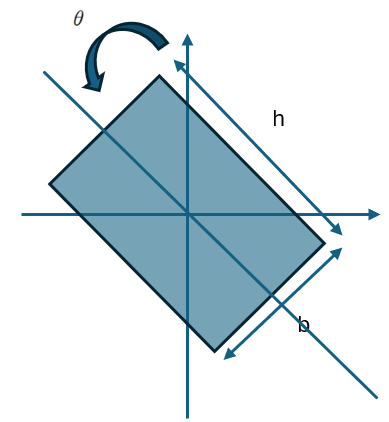 따라서 반시계 방향으로 θ 만큼 기울어진 직사각형 단면의 상승 모멘트는 다음과 같이 표현 할 수 있습니다.