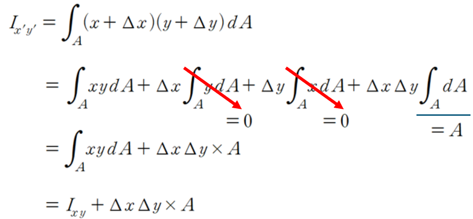 결론적으로, 상승 모멘트( Ixy)는 구조가 평행축 정리와 유사한 형태를 가지지만,
