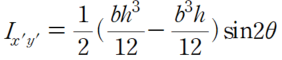 따라서 반시계 방향으로 θ 만큼 기울어진 직사각형 단면의 상승 모멘트는 다음과 같이 표현 할 수 있습니다.