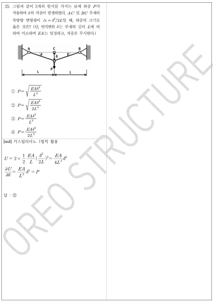 또한 마지막 20번 문항 역시 카스틸리아노 제1법칙을 활용하면