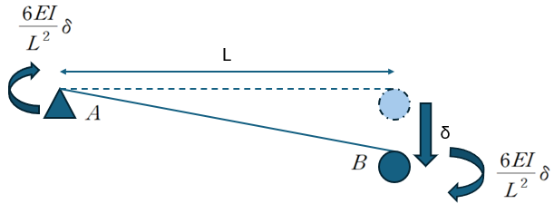 정정구조물에서는 지점침하가 생기면 부재력이 발생하지 않으니 실제로도 직선모양으로 위 그림처럼 휨이 없이 거동할 것입니다.